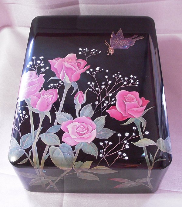 | 文箱「薔薇蒔絵」 問い合わせ先:川崎漆器店 TEL:0768-22-6640 |