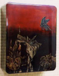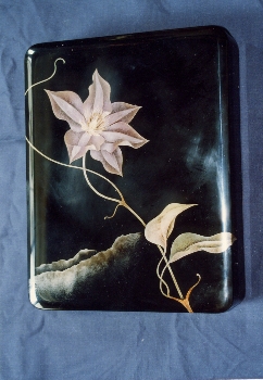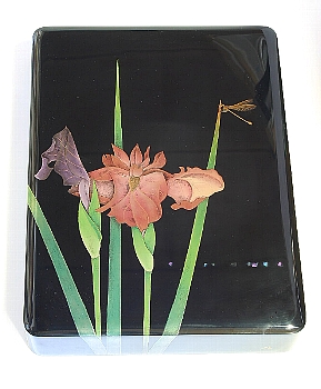 | 文箱「花菖蒲」 34.3p×25p×6.2p(高さ) 問い合わせ先:漆工芸なかたに TEL:0768-22-7393 |