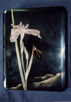 | 花菖蒲に糸蜻蛉 問い合わせ先:川崎漆器店 TEL:0768-22-6640 |