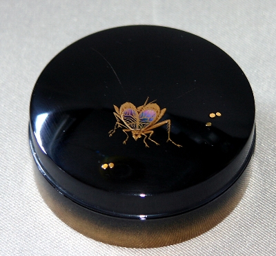 | 甲丸香合 ちりかけ 「鈴虫」 問い合わせ先:中政漆器店 TEL:0768-22-1778 |