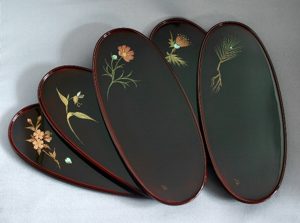 おもてなし盆「四季草花 漆絵(夜光貝あしらい)」