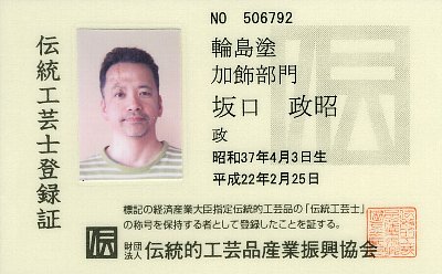 | 昭和37年 | 本名:坂口政昭 | 平成10年 | 輪島塗新作見本展「夕凪」 輪島日工会会長賞受賞 |