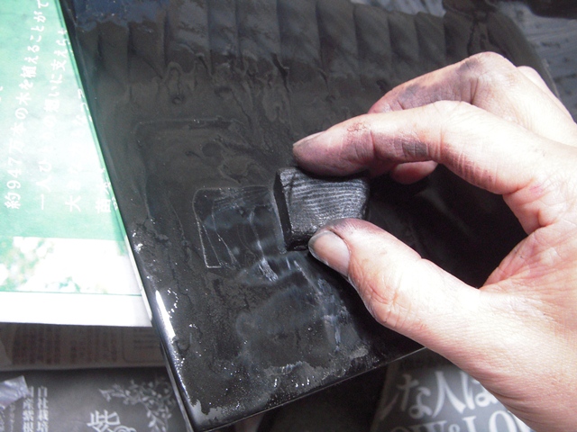 | 蒔絵を描く素材、いわゆるキャンバスは漆器が多いわけですが、じつわ、蒔絵を付けるに当たって最初にやっておくとても大切な作業があります。